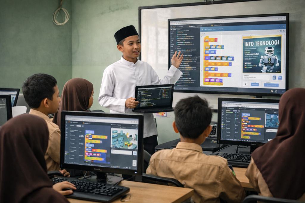 Dengan diimbangi pendidikan agama, sekolah menanamkan nilai-nilai spiritual melalui pembelajaran Al-Qur’an, penguatan akhlak, serta pembiasaan ibadah harian, sehingga peserta didik tumbuh menjadi pribadi beriman, berakhlak mulia, dan berkarakter kuat.